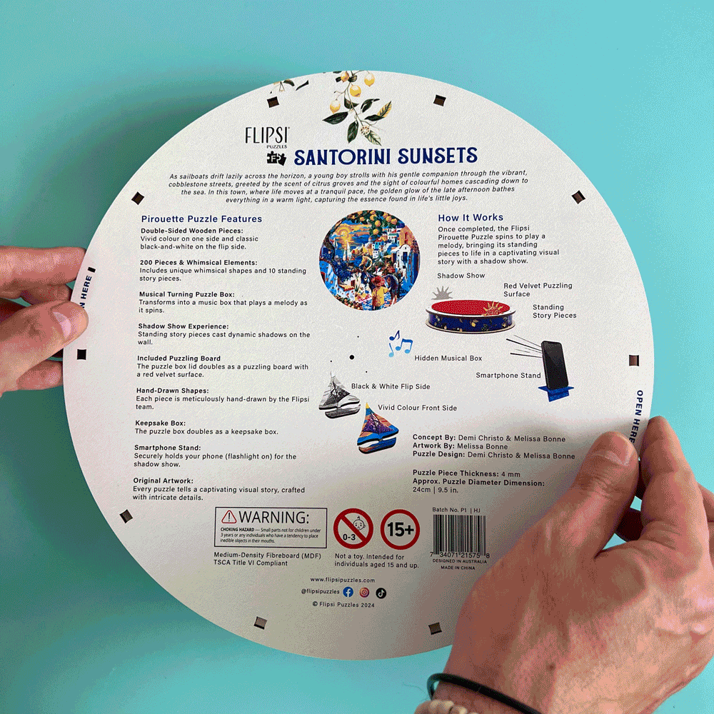 The puzzle’s box doubles as a built-in music box, playing a unique melody that reflects the theme and atmosphere of the puzzle’s story. Whether you’re puzzling alone or with friends, the gentle music enhances the experience, immersing you fully in the world of Pirouette as the board spins.