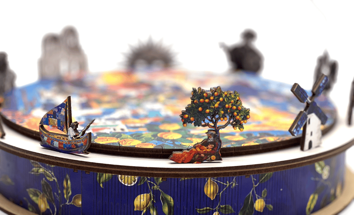 Set the Mood: The puzzle box lid doubles as a music box, playing a melody that brings the visual story to life.